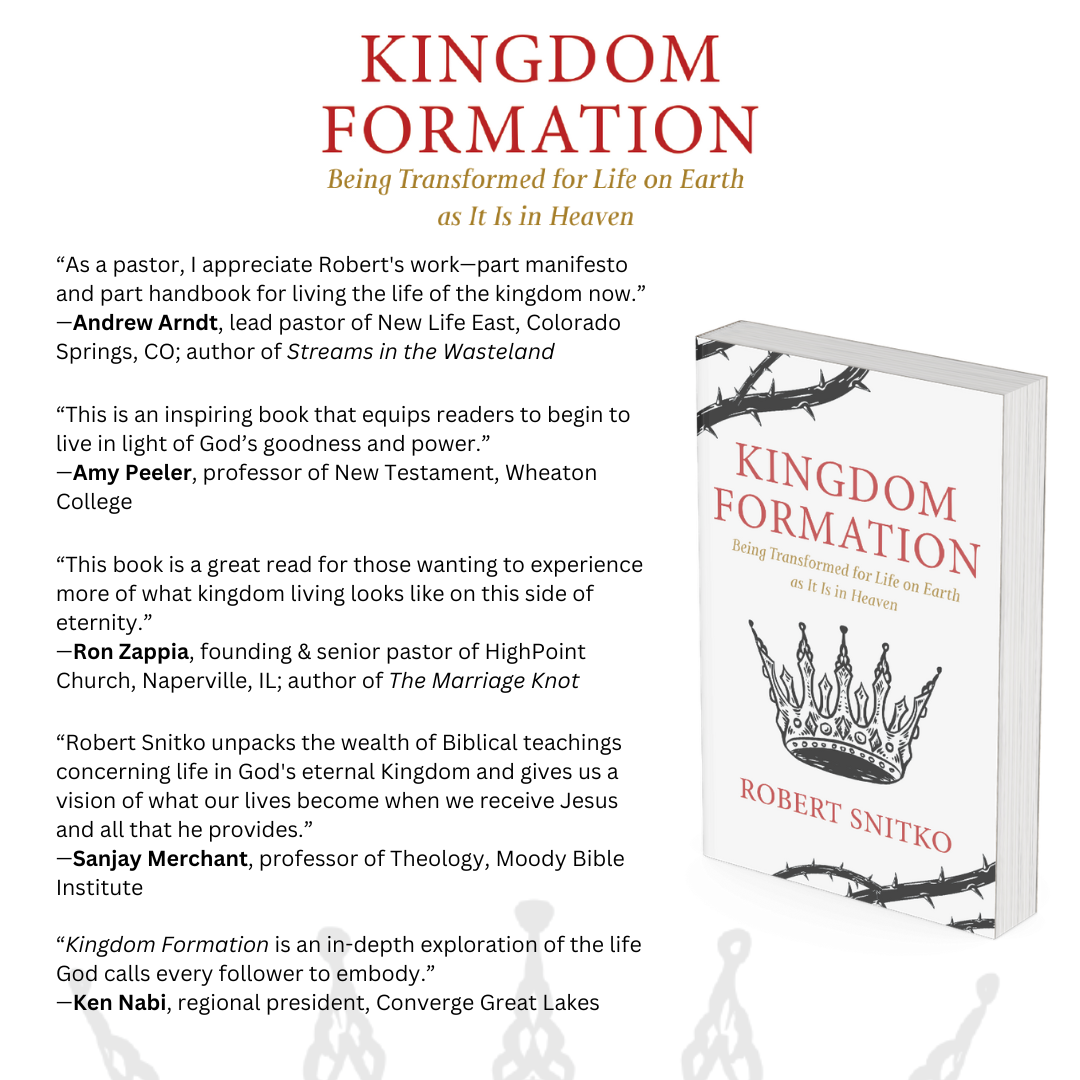 “Jesus was overjoyed to provide us with the means for living lives of godliness. Robert Snitko unpacks the wealth of Biblical teachings concerning life in God’s eternal Kingdom and gives us a vision of what our lives become when we receive Jesus and all that he provides. The exciting fact is, those who have received him, are already living in his Kingdom where peace, joy, and hope are our inheritance. Kingdom Formation is a celebration of this reality and a helpful guide for those who yearn to experience life to the fullest in Christ.”